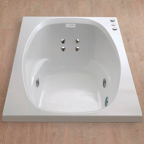 Tina rectangular, fabricada en acrílico de 3.2 mm. de alto impacto y brillo. Con Hidromasaje
