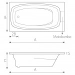 Tina rectangular, fabricada en acrílico de 3.2 mm. de alto impacto y brillo. Con Hidromasaje, Blower y Aquacolor