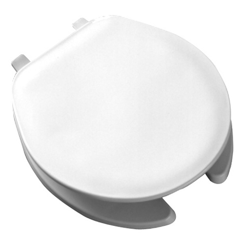 Asiento elongado de frente abierto con tapa para escusado, fabricado en plástico de larga duración con alto brillo en color blanco, bisagra ajustable con arandela metálica. Modelo 175AR000 Marca Bemis.