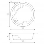 Tina circular Fabricada en acrílico de 3.2 mm. de alto impacto y brillo. Con Hidromasaje, Blower y Aquacolor