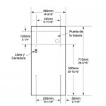 Puerta de la basura en acero, asegurada con bisagra de acero con simbolo internacional de eliminacion de residuos.