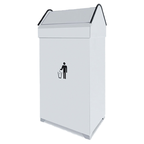 Basurero balancín pequeño con cabezal desmontable para sujeción de bolsas, fabricado en lámina electrocincada acabado en pintura poliéster, disponible en diversos colores: blanco, azul, verde, rojo, amarillo, negro, dimensiones: 68 x 32 x 26 cm. Capacidad 37 litros, modelo BE75500, marca Jofel.