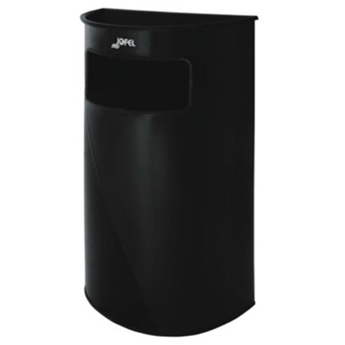 Basurero media luna con cenicero, fabricado en lámina electrocincada acabado en pintura epoxi en color negro con cubo interior, protección plástica en boca y fondo, cenicero opcional, dimensiones: 85 x 49 x 25 cm. Capacidad 45 litros.
