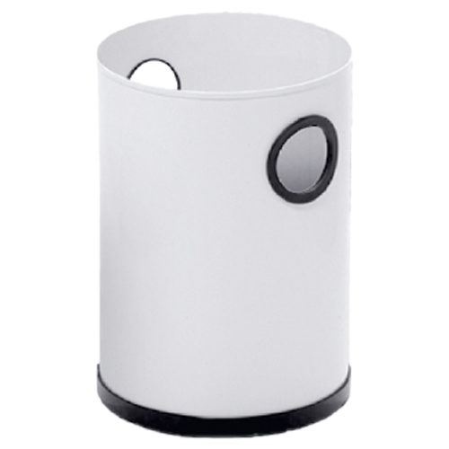 Basurero redondo pequeño, fabricado en lámina electrocincada, con protectores plásticos en asas, acabado en pintura poliéster color blanco, dimensiones: 30 x 21 cm. Modelo BI70100, marca Jofel.