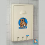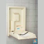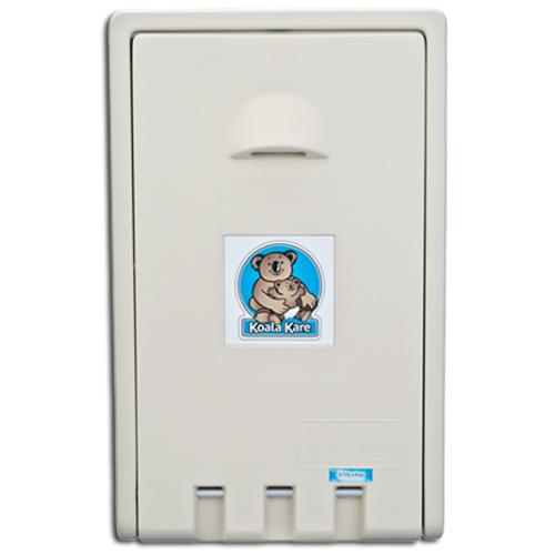 Cambiador de pañales vertical, provee de un sitio seguro y adecuado para niños en baños públicos, la cama presenta un área cóncava y suave con correa de seguridad para cambiar bebés. Medidas 560mm x 902mm. Color Crema modelo KB-101 marca Koala Bear Kare.