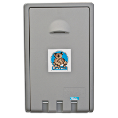 Cambiador de pañales vertical color gris, provee de un sitio seguro y adecuado para niños en baños públicos, la cama presenta un área para cambiar bebés cóncava y suave con correa de seguridad, medidas 560mm x 902mm. Modelo KB-101-01, marca Koala Bear Kare