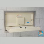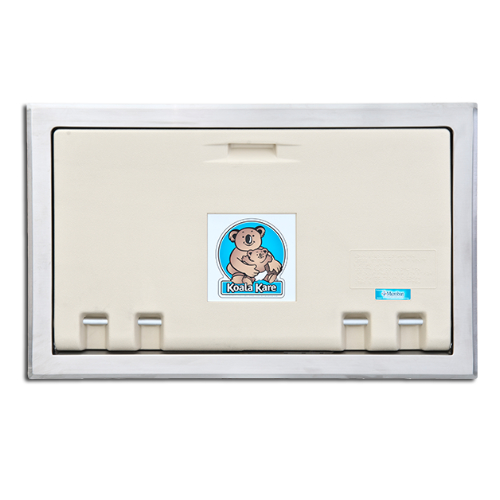 Cambiador de pañales horizontal para empotrar a muro, color crema, con perfil perimetral de acero inoxidable, incluye todos sus elementos de instalacion, modelo KB-100 00ST marca Koala Bear Kare.