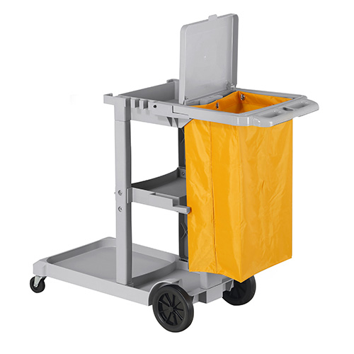 Es un carro para labores de conserje, cuenta con una plataforma al frente para colocar una cubeta exprimidora de hasta 36 litros.