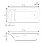 Tina rectangular fabricada en acrílico de 3.2 mm. de alto impacto y brillo. Con Hidromasaje, Blower y Aquacolor