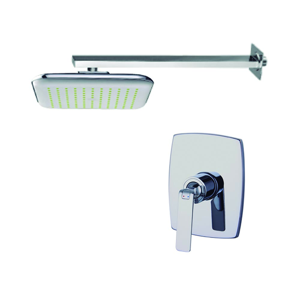 Conjunto de regadera de lluvia, brazo, chapetón y monomando, para empotrar sin desviados, fabricado en latón terminado en cromo, de la linea CTX, componentes europeos, cartucho cerámico, regadera anticalcáreo en ABS, modelo TB 10.221, marca Tecnobath.