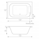 Tina rectangular con hidromasaje, blower y aquacolor, fabricada en acrílico de 3.2 mm. de alto impacto y brillo.