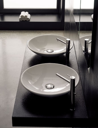 Lavabo de cerámica blanco de sobreponer, medida de Ø45; de la línea Thine Line, modelo 8044, marca Scarabeo.