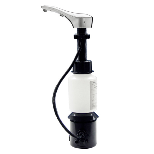 Dispensador de jabón en espuma de llenado superior para montar sobre la encimera, en terminado cromo, con sensor SureFlo automático, con depósito con capacidad para 1 litro, funciona con 4 baterías alcalinas AA o con adaptador externo CA. Espesor de montaje máximo 51mm. Modelo B-828, marca Bobrick.