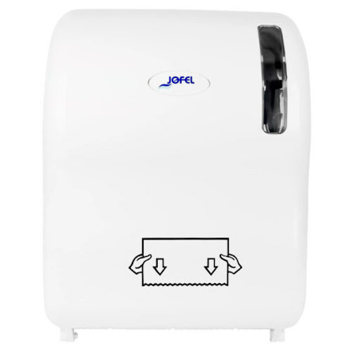 Dispensador de Toalla. Base y Tapa blanca con visor para observar consumo de papel.