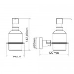 Dosificador de jabón a muro, terminado cromado, medida de 14.2 cm de alto, 7.9 cm de ancho y proyección de 12.7 cm
