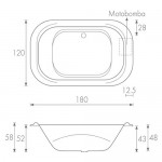 Tina rectangular redondeada, fabricada en acrílico de 3.2 mm. de alto impacto y brillo. Con Hidromasaje.