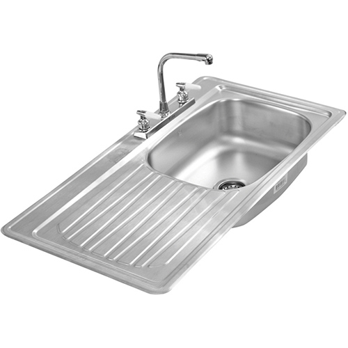 Tarja para cocina de la línea Clásica para empotrar. Escurridor del lado izquierdo. Terminada en satín, dimensiones generales de 101 x 54 cm, tamaño de la tina de 49 x 37 cm, profundidad de la tina de 18 cm, calibre de 22, con orificios para llaves.; de un taladro y de tres. Complementos de accesorios: contra canasta LK99, EB CC LUXEo EB CC SIMPLE (se venden por separado) Modelo C-201N. Marca EB-Técnica.