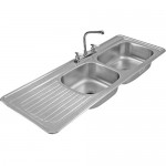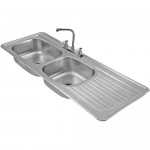 Tarja para cocina, termiando en satín, dimensiones generales de 144 x 54cm tamaño de la tina: grande: 49 x 37cm; pequeña: 41 x 37cm, profundidad de la tina de 18cm, calibre de 22, con orificios para llaves. Complementos de accesorios contra canasta LK99, EB CC LUXE o EB CC SIMPLE (se venden por separado), de la línea Clásica de empotrar, marca EB Técnica.