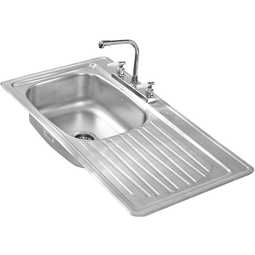 Tarja para cocina de la línea Clásica para empotrar. Escurridor del lado derecho. Terminada en satín, dimensiones generales de 101 x 54 cm, tamaño de la tina de 49 x 37 cm, profundidad de la tina de 18 cm, calibre de 22, con orificios para llaves.; de un taladro y de tres. Complementos de accesorios: contra canasta LK99, EB CC LUXEo EB CC SIMPLE (se venden por separado), modelo C-202 Marca EB Técnica.