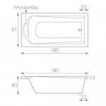 Tina rectangular, fabricada en acrílico de 3.2 mm. de alto impacto y brillo. Con Hidromasaje Relax Giovani
