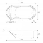 Tina oval, fabricada en acrílico de 3.2 mm. de alto impacto y brillo. Sin Hidromasaje.