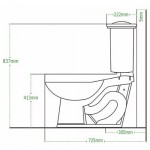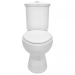 Fabricado en dos piezas: taza y tanque de botón superior.