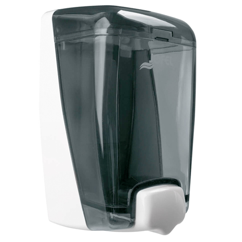 Dosificador de Jabón de 1000 ml. Posee un mecanismo interno de pulsado que evita escurrimiento de Jabón. Color de producto: Base y Pulsador Blanca-Tapa y deposito Humo. Indicado para W.C. públicos de alta rotación.