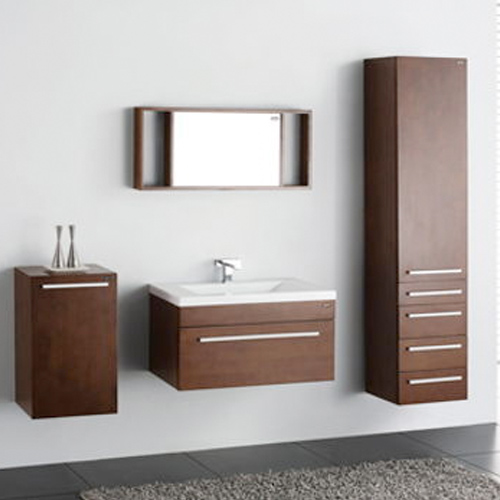 Fabricado en madera tratada resistente a ambientes húmedos. Lavabo del tamaño del gabinete. Incluye espejo y dos gabinetes laterales
