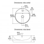 Lavabo de una perforación de sobreponer con rebosadero con inserto cromado.