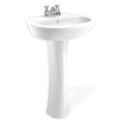 Lavabo con pedestal, recomendado para espacios reducidos, esmalte de alta resistencia, disponible con orificios de 4″, Altura Total 33 ⅞»Atura Lavabo 21 ¾» Profundidad Pedestal 6 ¼», modelo Terra, marca Cato.