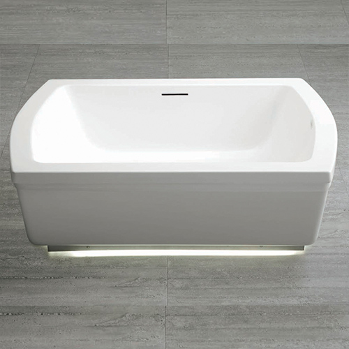 Tina rectangular redondeada fabricada en acrílico de 3.2 mm. de alto impacto y brillo. Sin Hidromasaje.