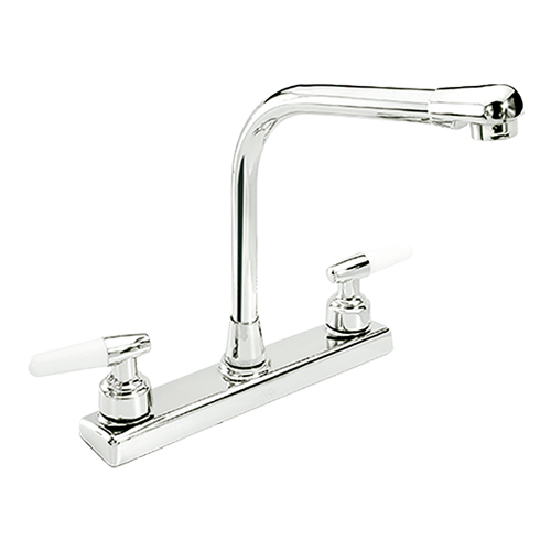 Llave de fregadero en 8 pulgadas, mezcla agua fría o caliente. Cuerpo de latón, cubierta de latón, cierre cerámico de 1/4 de vuelta. Modelo VP 50.067, marca Valmex.