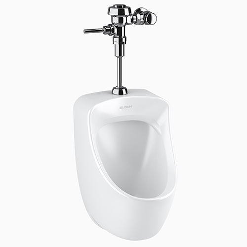 Combo de mingitorio mediano, blanco al alto brillo, con fluxometro Royal 186-0.125 mecánico de manija, 0.5 litros por descarga, válvula de retención 3/4″, modelo WEUS 7000.1001-0.125 Royal, código 70001001, marca Sloan.