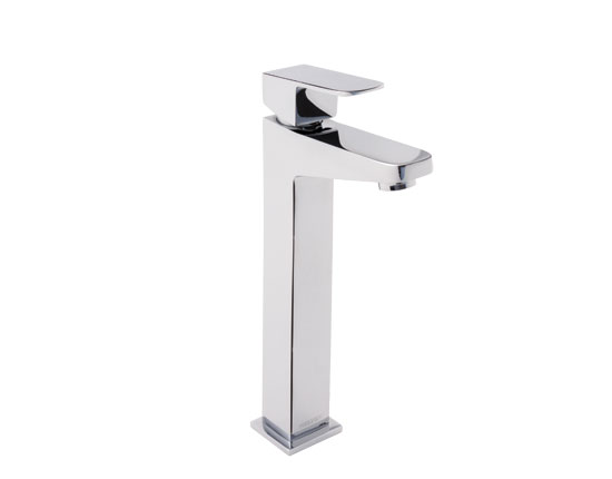 Monomando de lavabo alto, de la línea Squadra®. Incluye contra de rejilla, presión mínima requerida 0.40 kg/cm2, modelo E-937, marca Helvex.