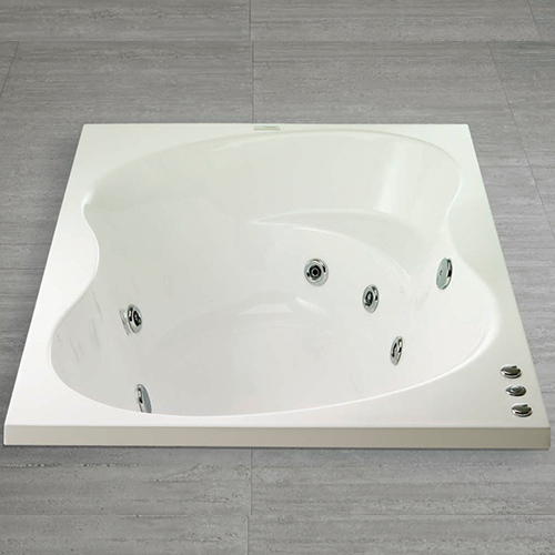 Tina rectangular, fabricada en acrílico de 3.2 mm. de alto impacto y brillo. Con Hidromasaje, Blower y Aquacolor