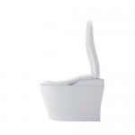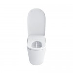 Inodoro inteligente de una pieza con perfil bajo y faldón elegante: Con funciones integradas de limpieza personal y confort.