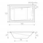 Tina rectangular, fabricada en acrílico de 3.2 mm. de alto impacto y brillo. Con Hidromasaje