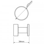Percha a muro, terminado cromado, medida de 2.5 cm de diámetro y proyección de 3.4 cm