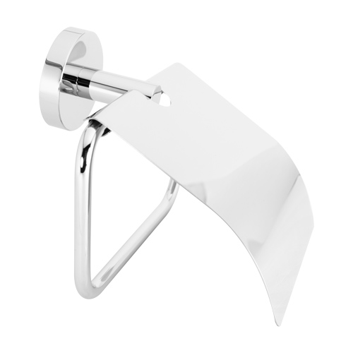 Portarrollo higienico con tapa decorativa, fabricado en latón cromado pulido.
