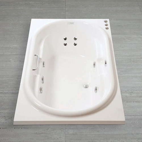 Tina rectangular, fabricada en acrílico de 3.2 mm. de alto impacto y brillo. Sin Hidromasaje.
