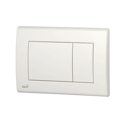 Pulsador para sistema de tanque oculto, en color blanco. Modelo M 270, marca Tecnobath.