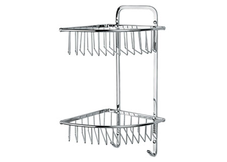 Repisa esquinera doble, de rejilla, convertible a izquerda o derecha, modelo REJ-05, marca Helvex.