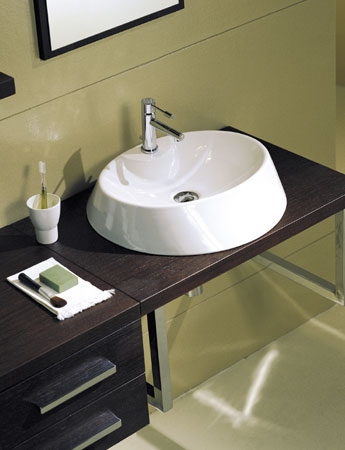 Lavabo residencial, para sobreponer, en color blanco. Diseño innovador y elegante, medida de 44.6 x 45cm, de la línea Rugby, modelo 8041/R, marca Scarabeo.
