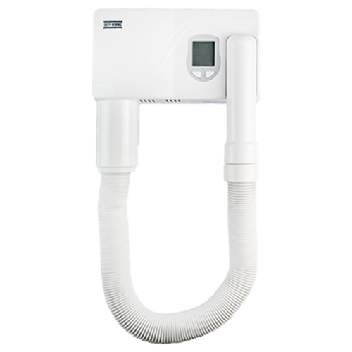 Secadora para cabello con pantalla digital, se instala fija a la pared, ideal para hoteles, muy moderna y práctica, estilo europeo, fácil de usar, 5 niveles de calor, timer de 18 minutos, se apaga cuando coloca la manguera de aire en la base, modelo DW-600A, marca Duty Works.