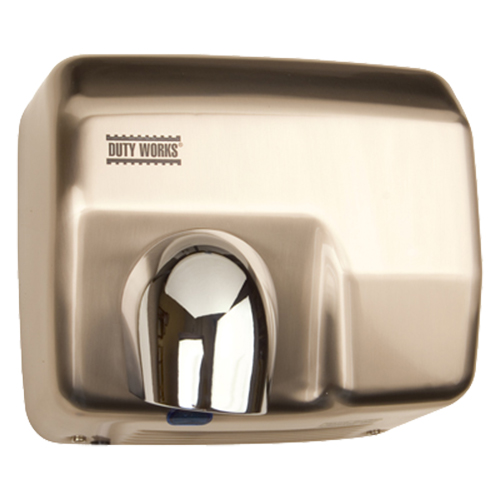 Secador de manos automático huracán satín con sensor infrarojo de circuito digital, gran poder de velocidad de aire, seca tus manos de 10 a 15 segundos, motor potente de larga duración, gran ahorrador de energía, fabricado en acero inoxidable en acabado sátin resistente y antivandalismo, nariz dispensadora de aire giratoria a 360 grados, voltaje 110v, potencia 1700w, volumen de aire 270m3/h, velocidad de aire 30m/s, dimensiones: 27 x 24 x 8 cm., peso 6.25 kg. Modelo DW-250-S, marca Duty Works.