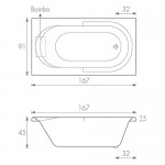 Tina rectangular, fabricada en acrílico de 3.2 mm. de alto impacto. Con hidromasaje.