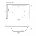 Tina rectangular, fabricada en acrílico de 3.2 mm. de alto impacto y brillo. Con Hidromasaje.