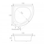 Tina esquinera, fabricada en acrílico de 3.2 mm. de alto impacto y brillo. Con Hidromasaje