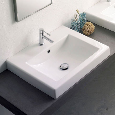 Lavabo color blanco, para montar llave de monomando. Medida de 60 x 51cm. De la línea Square, modelo 8007/A, marca Scarabeo.