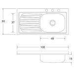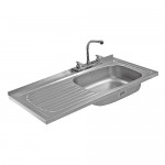 Tarja de acero inoxidable con escurridor izquierdo. Se puede empotrar a la pared o colocar sobre cubierta. Línea Calesa.